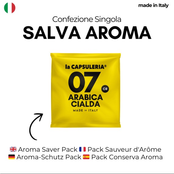 Einzeln verpackte Papierkapseln in der Aroma-Konservierungspackung. Perfekt, um alle Aromen von frisch geröstetem Kaffee zu bewahren.
