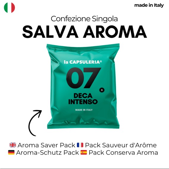 Kapsel einzeln verpackt im Aroma Saver Pack. Perfekt, um alle Aromen von frisch geröstetem Kaffee zu bewahren.