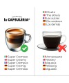 Intensiver und gerösteter Kaffee. Kräftig, cremig und anhaltend. Dunkle Röstung. Intensität 10