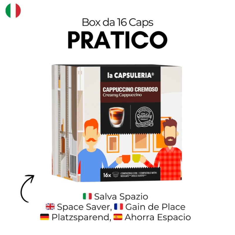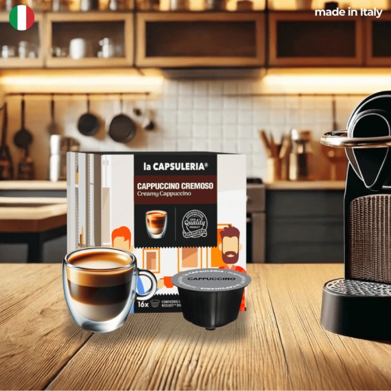 Milch und Kaffee in einer einzigen Kapsel, die Sie in vollen Zügen genießen können.