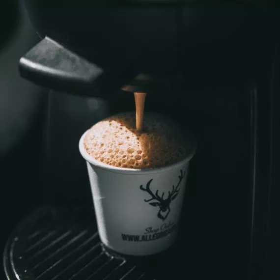 Geben Sie das Getränk aus, bis es eine Kaffeetasse füllt, um es optimal zu genießen.