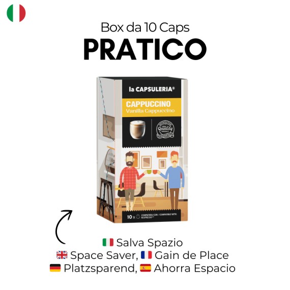 Kapseln mit löslichem Präparat für Getränke mit Cappuccino-Vanillegeschmack, gebrauchsfertig, kompatibel mit dem Nespresso®* System