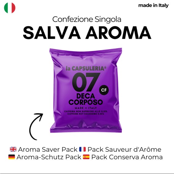 Capsule individually packaged in the Aroma Saver Pack. Perfect for preserving all the aromas of freshly roasted coffee.