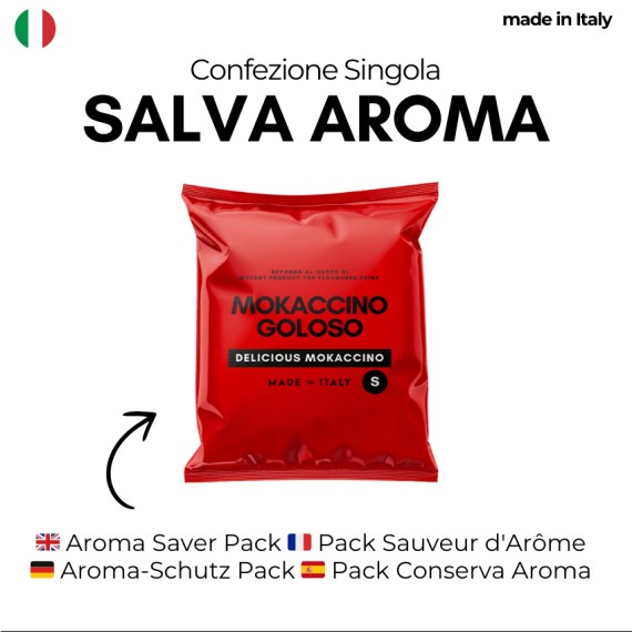 Capsule individually packaged in the Aroma Saver Pack. Perfect for preserving all the aromas of freshly roasted coffee.