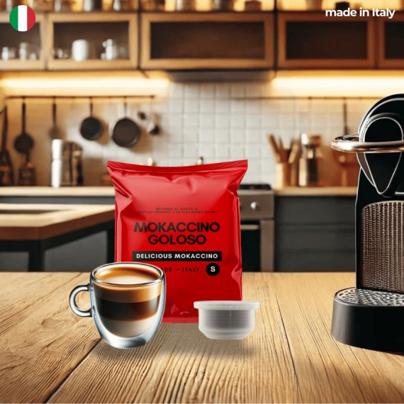 Capsules of soluble preparation for hazelnut flavored cappuccino drink ready to use compatible with the La Capsuleria system