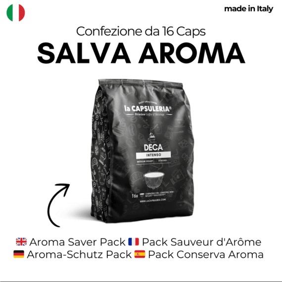 Capsule packaged in the Aroma Saving Pack. Perfect for preserving all the aromas of freshly roasted coffee.