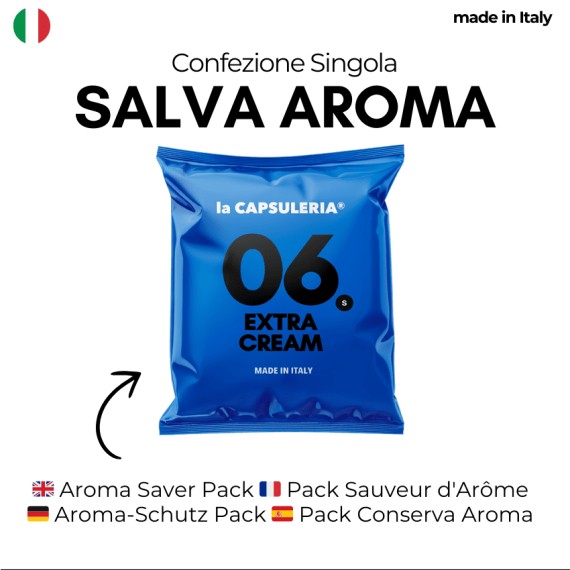 Cápsula envasada individualmente en el pack Aroma Saver. Perfecto para conservar todos los aromas del café recién tostado.