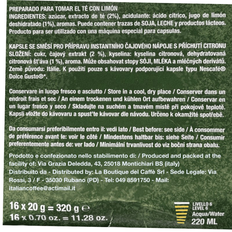 Bebida Fría con sabor a Té Negro Limón - Cápsulas compatibles con Nescafé Dolce Gusto®*
