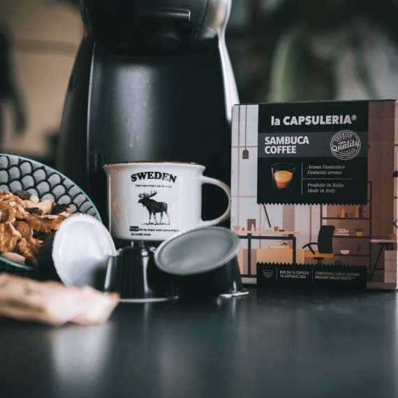 El Café Sambuca es un espresso con aroma natural de Sambuca (anís, sin alcohol) para los amantes del café clásico de verdad.