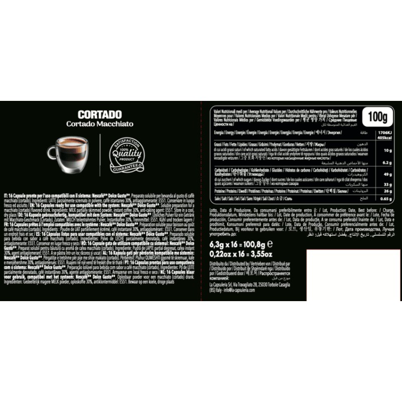 Cápsulas compatibles con Nescafé* Dolce Gusto* para todos los modelos de máquinas de café Nescafé* Dolce Gusto*.