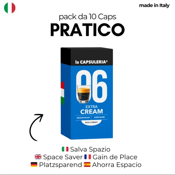 Nuestras cápsulas para su máquina Nespresso son el resultado de años de estudio, investigación, pruebas y ensayos. Después de varios años, podemos decir que hemos conseguido una calidad realmente inigualable. Nuestras cápsulas producidas en Italia serán perfectas para su cafetera, ya sea una De Longhi, Krups, Saeco, Philips, etc. Las cafeteras ya no tienen secretos para nosotros. Sabemos exactamente cómo debe producirse una cápsula para que el resultado sea extremadamente cremoso, intenso y lleno de sabor.