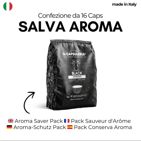 Capsule conditionnée dans l'Aroma Saving Pack. Parfait pour conserver tous les arômes du café fraîchement torréfié.