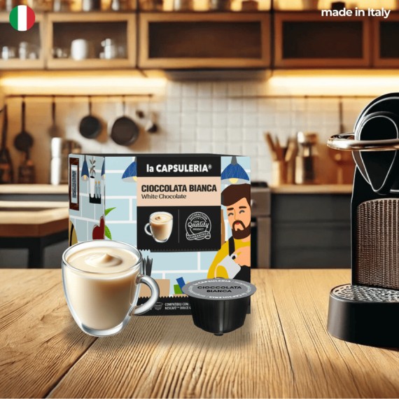 Sublime chocolat chaud blanc, doux et exquis, au goût délicat et sucré.