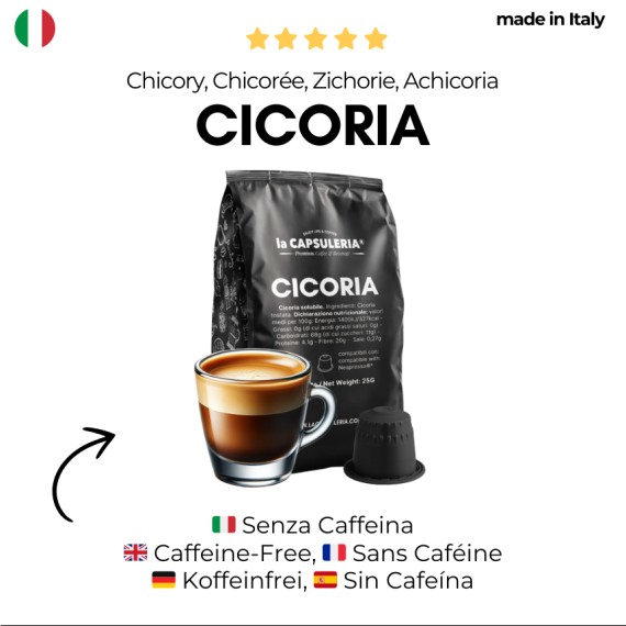 Le café de chicorée est la parfaite alternative au café classique décaféiné. Il est fabriqué à partir de la racine de chicorée (Chicorium intybus), qui est récoltée en automne et qui est d'abord débarrassée de la terre, séchée et enfin torréfiée, puis pulvérisée.