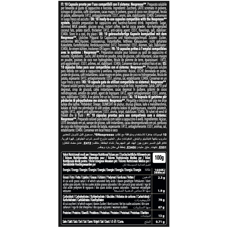 Le résultat de ce mélange extraordinaire est un cappuccino avec un arôme de noisette, un goût doux et une crème généreuse.