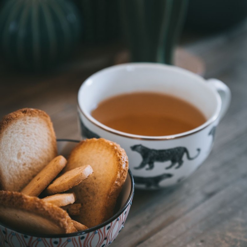 Thé noir en feuilles au citron à déguster dans une grande tasse