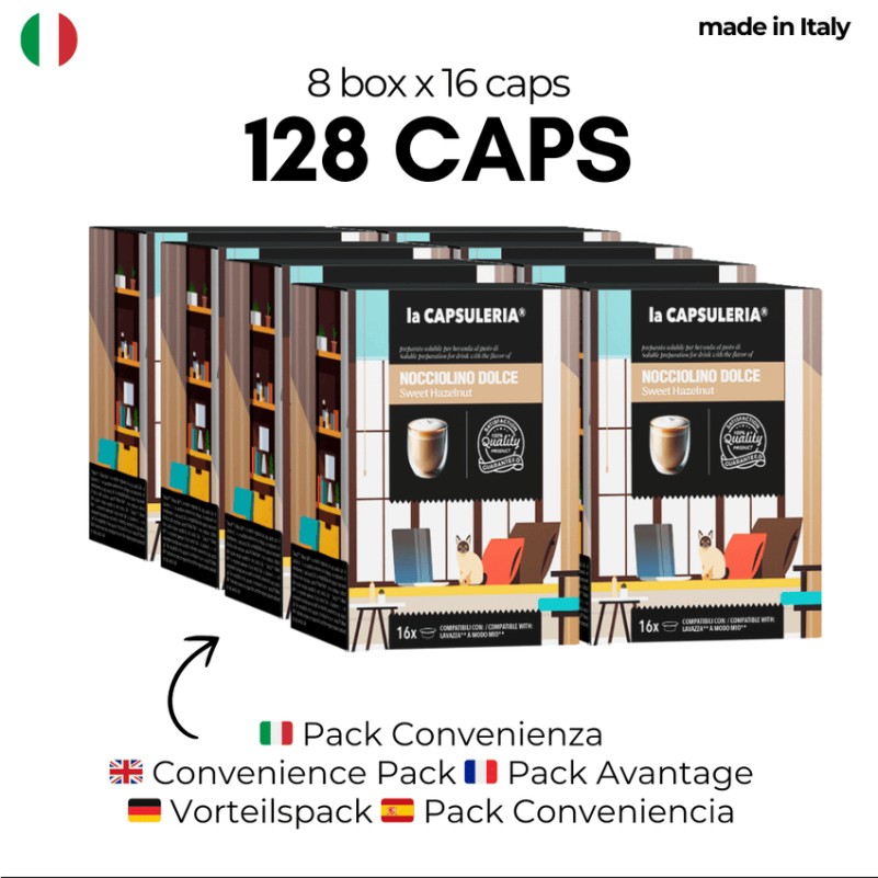 - Capsules de boisson soluble aromatisée cappuccino noisette prêtes à l'emploi compatibles avec le système Lavazza A Modo Mio®*