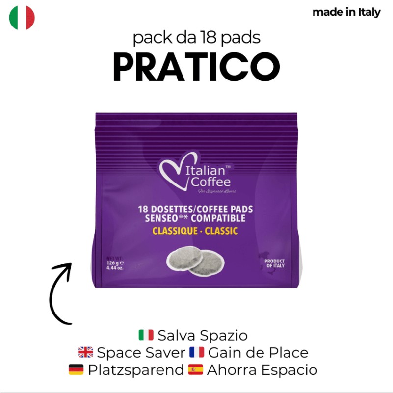 - Dosette en papier emballée individuellement dans le pack de préservation des arômes. Parfait pour conserver tous les arômes du café fraîchement torréfié.