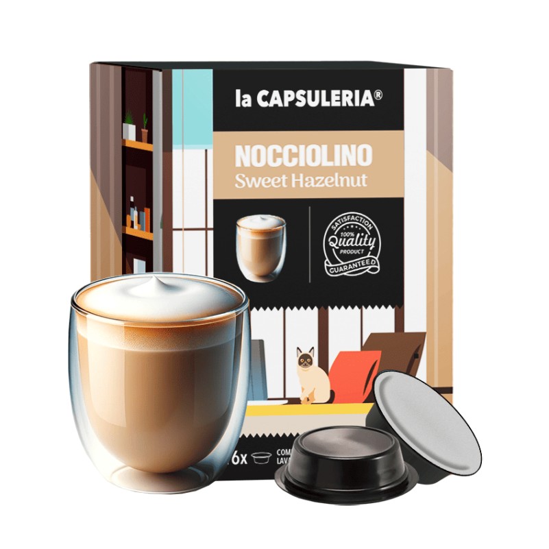 Dall'incontro di caffè, latte e nocciole nasce una deliziosa bevanda da gustare in versione espresso.