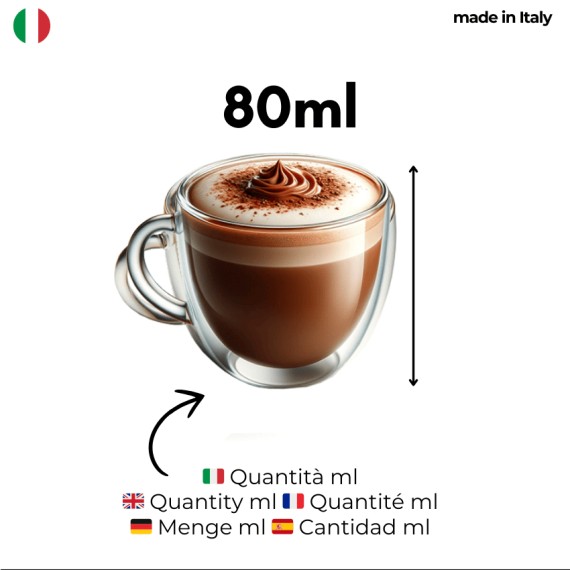 Confezione da 2 tazzine in Vetro borosilicato doppio isolamento termico da 80ml