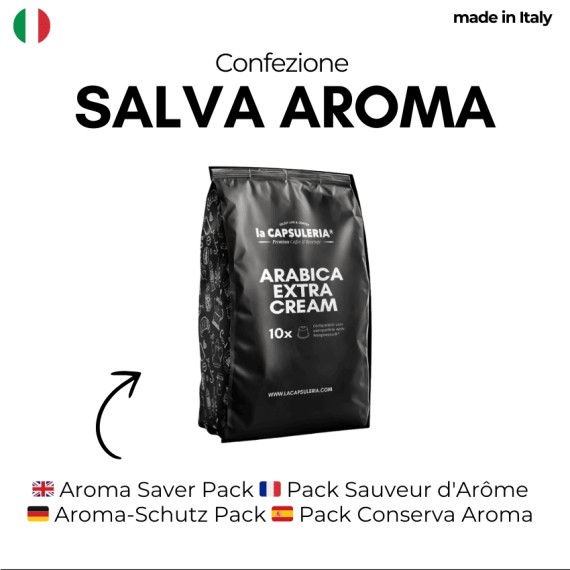 Capsula confezionata nella Confezione Salva Aroma. Perfetta per preservare tutti gli aromi del caffè appena tostato.